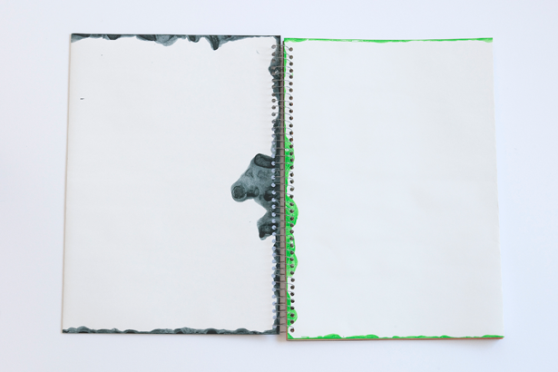11 Blätter mit Spiralbindung, 42,5cm x 31cm x 3cm, Acryl auf Papier, 2009